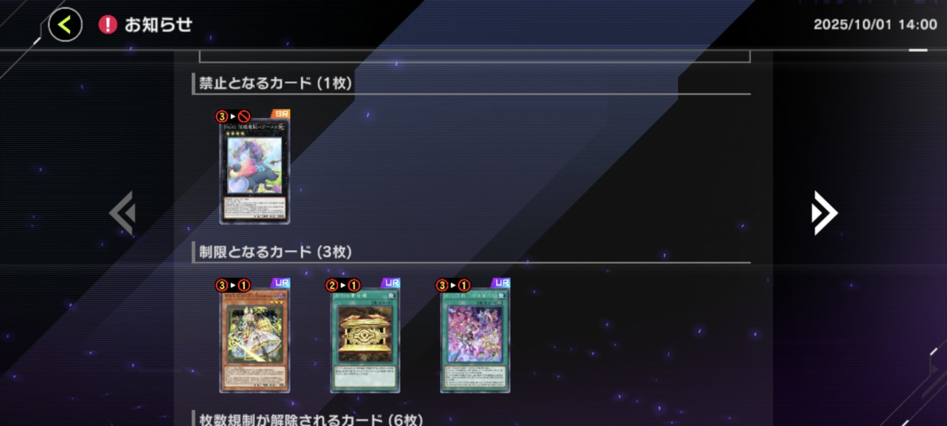 | … | 625/10/01(水)14:01:53No.1358641731+ユベルこんだけ緩和されても枠ねえぜ… |