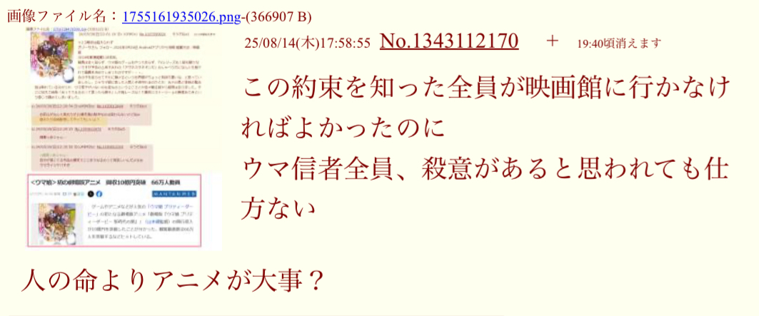 | … | 525/10/01(水)19:07:52No.1358713106そうだねx7imgのクソスレで言ったことなんてファンが知るかよ過ぎる… |