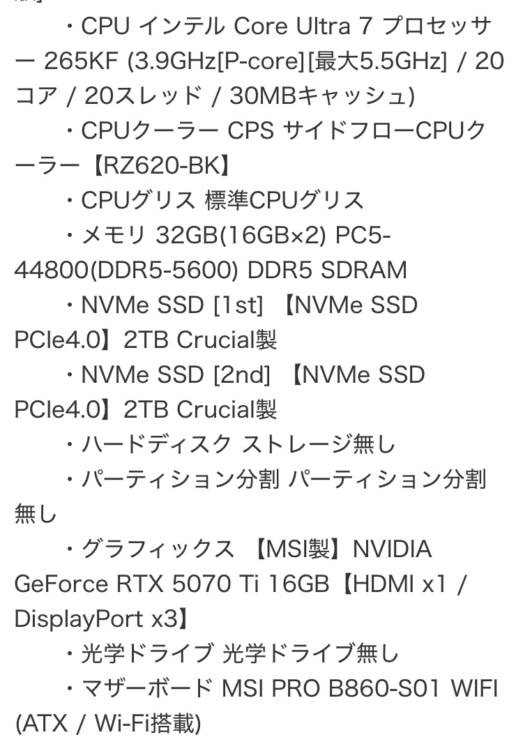 | … | 10725/10/04(土)01:10:56No.1359421905そうだねx1BTOの構成がしっくりこなかったからツクモで自作代行してもらった |