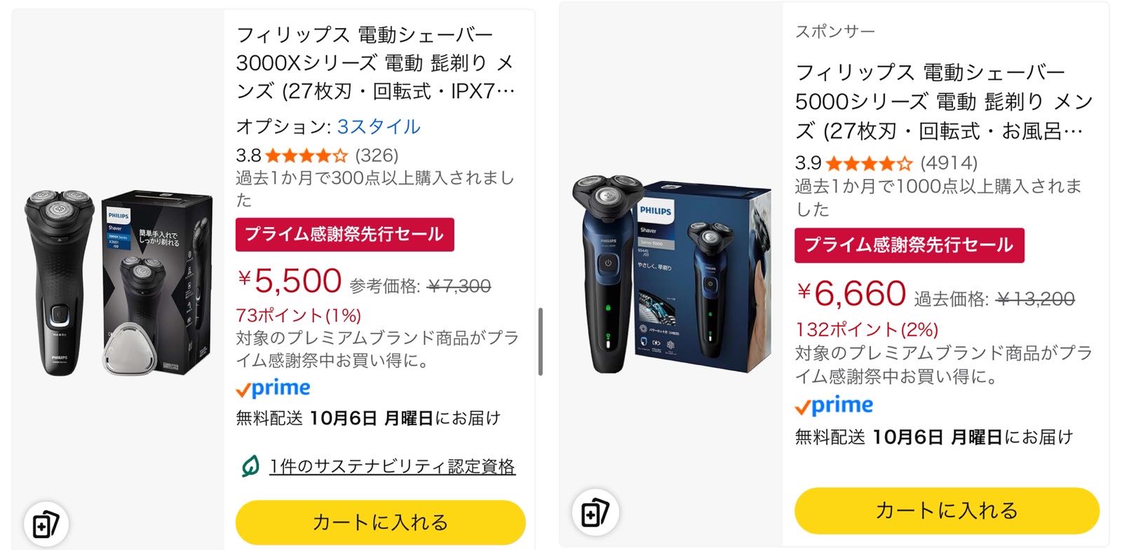 | … | 5725/10/04(土)22:14:37No.1359684046そうだねx1>フィリプスの電動シェーバー尼のセール中のこれだよね |