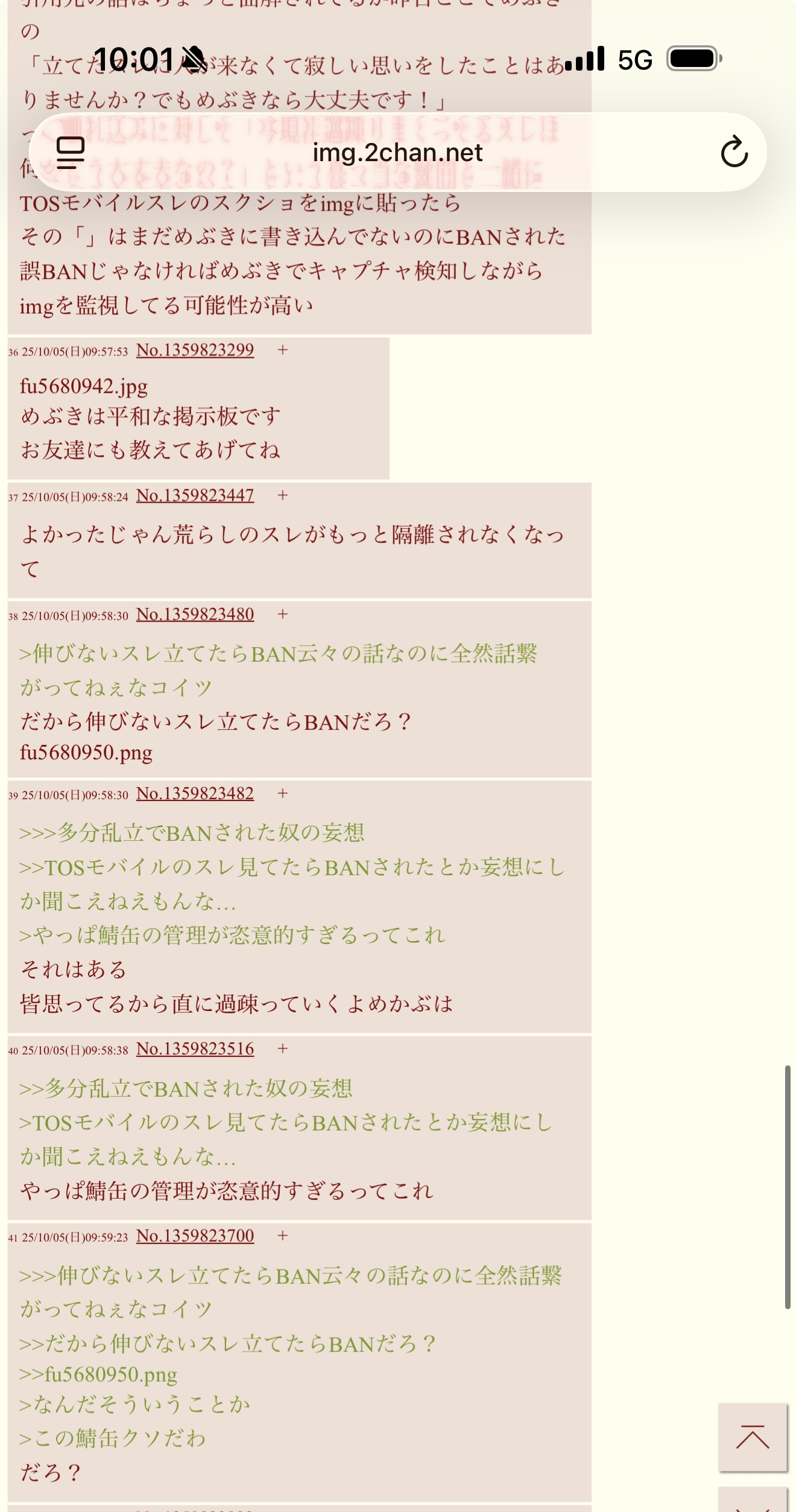 | … | 40125/10/05(日)11:00:54No.1359839895+>TOSモバイルBANの件ってBANされたのが面白いと思って気づかなかったけど |