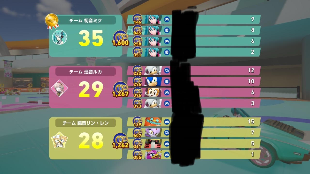 | … | 8525/10/05(日)14:00:18No.1359887749+ミクさん三人チームに突っ込まれたが無事一位とリングトップだぜ |