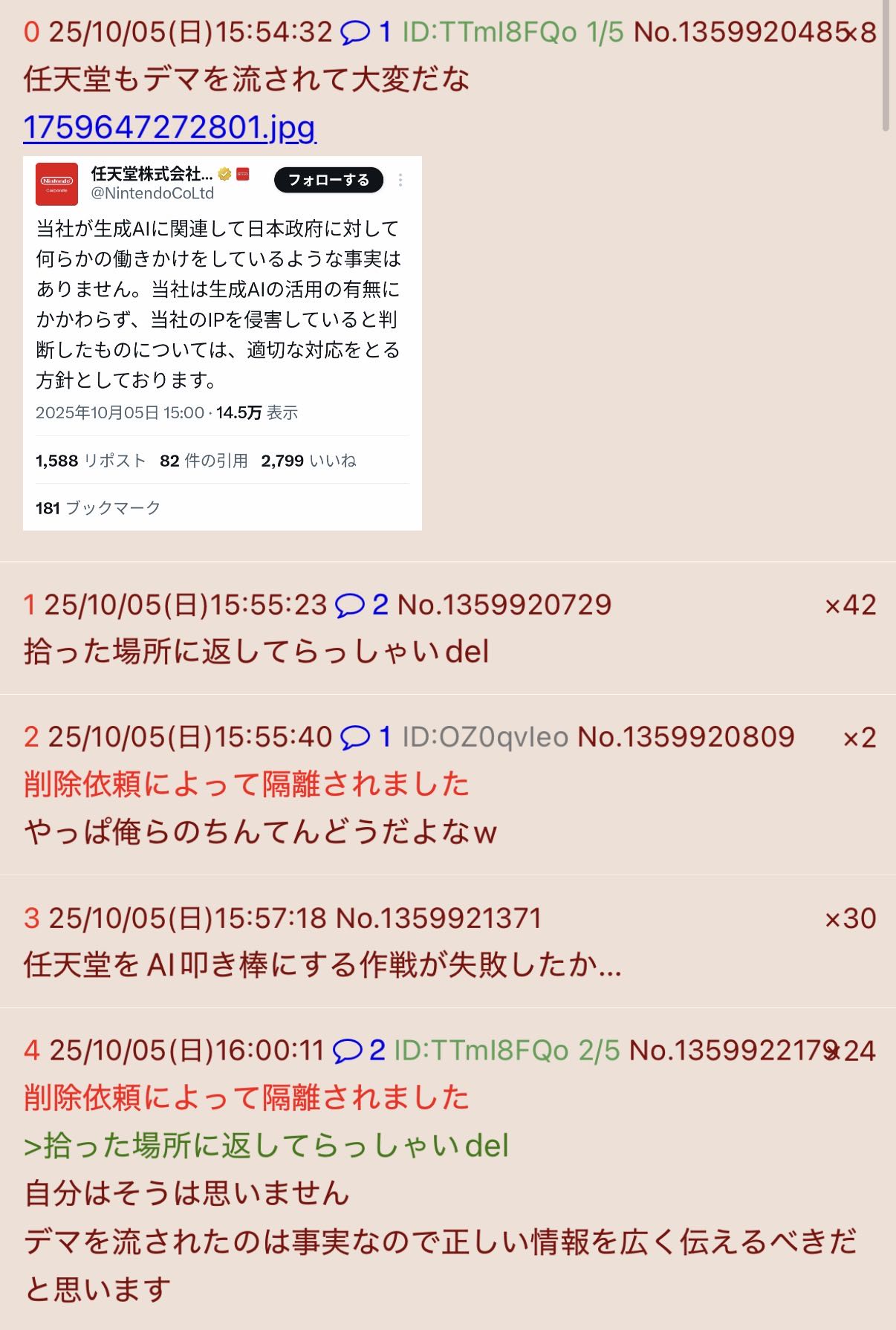 | … | 2025/10/05(日)18:09:40No.1359964044そうだねx16とりあえずdelだな |