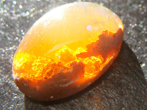 オパール原石とかミネショだと水に濡れてて光多めの状態で見るからそれ目指して磨くことになる