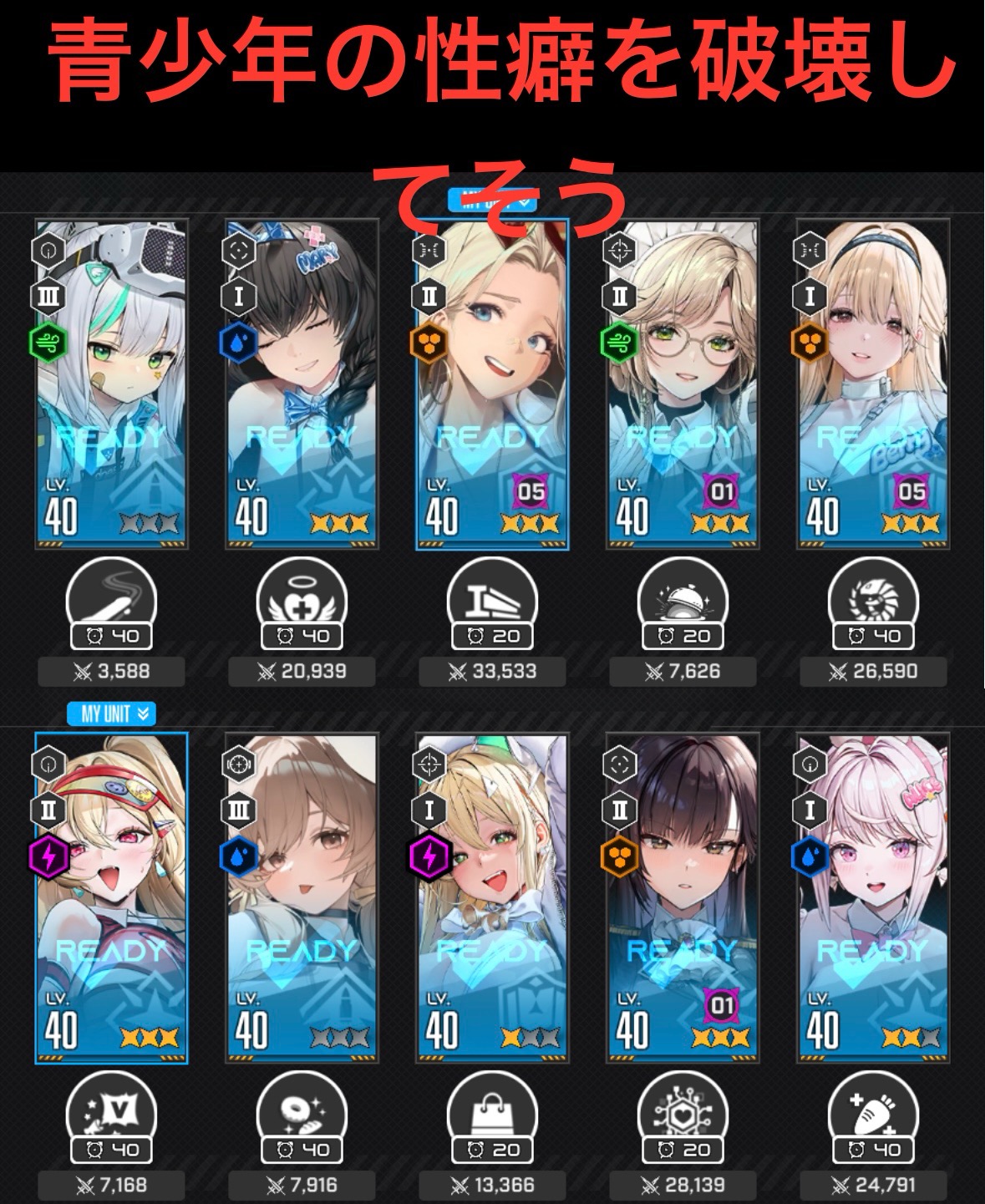 | … | 26625/10/06(月)00:17:18No.1360110971+レンちゃんが唯一6まんこえてるけど半年くらい風圧弱点おまるちやってないから出す機会が無い |