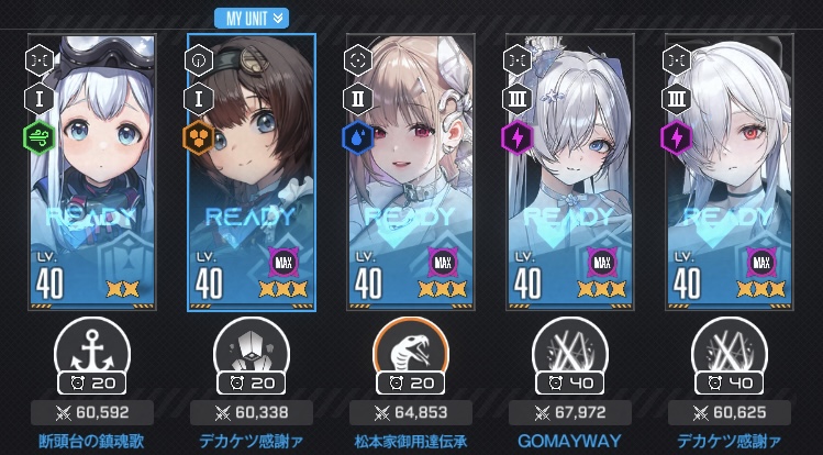 | … | 5325/10/05(日)23:31:41No.1360096264そうだねx1>見せ槍バトルでトップになるも配置が後列だったりすると引っ込めるべきか悩むわ |