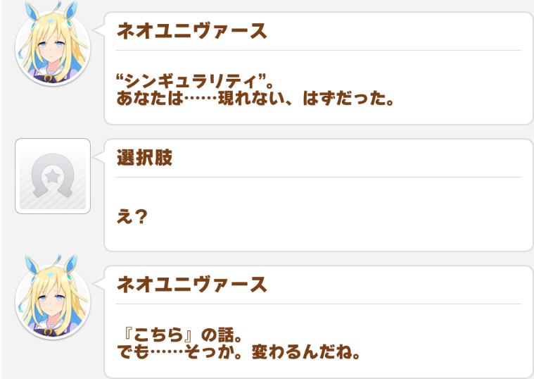 | … | 3425/10/06(月)16:53:58No.1360254117+育成シナリオを映像化とまで言わないからいくつかの育成イベントフルボイスにしてほしい |