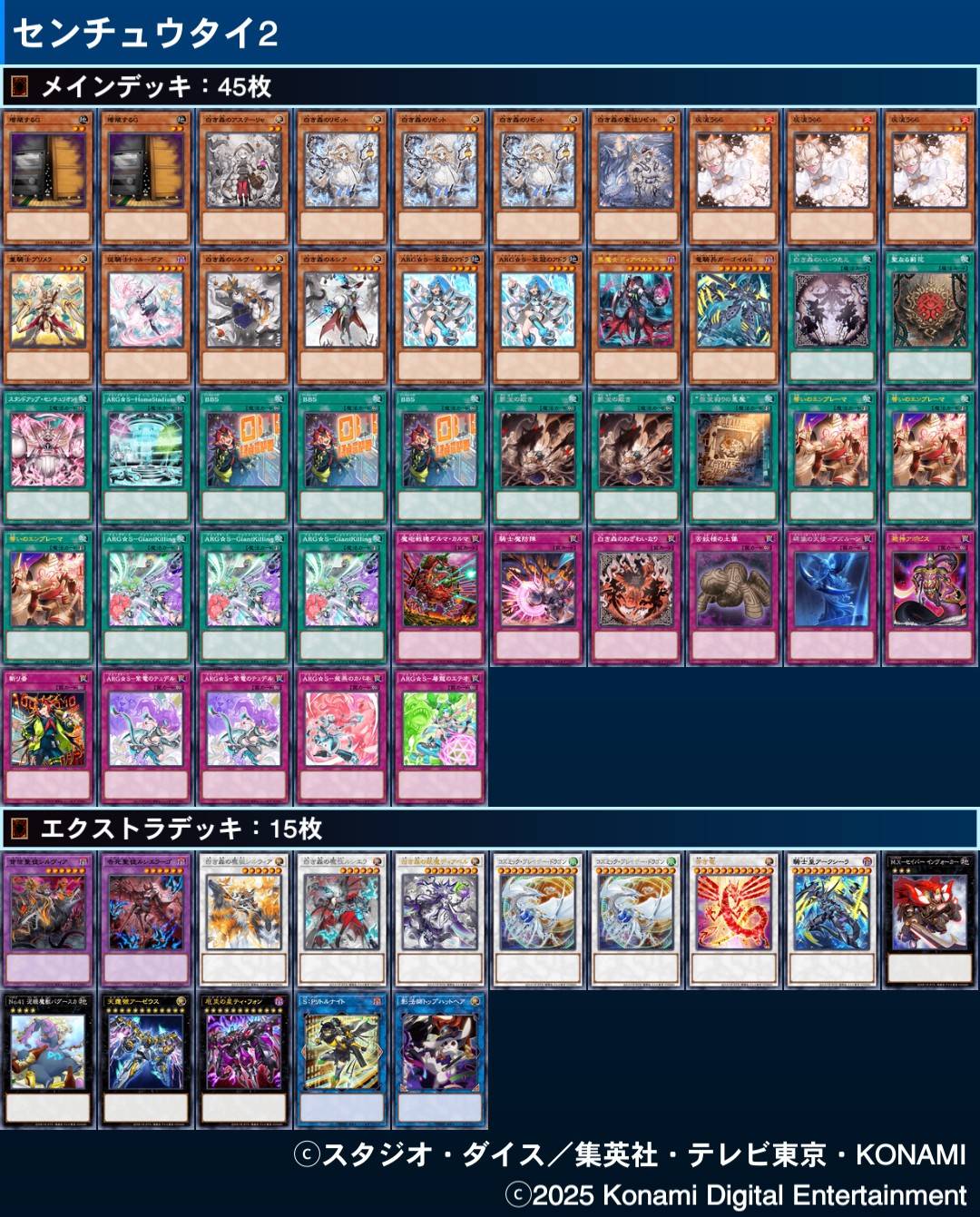 | … | 10125/10/08(水)18:38:51No.1360876367+重ねてエクシーズでテーマ魔法サーチとテーマモンスター2枚を3枚に変換できるなんて絶対評価で超強いだろ |