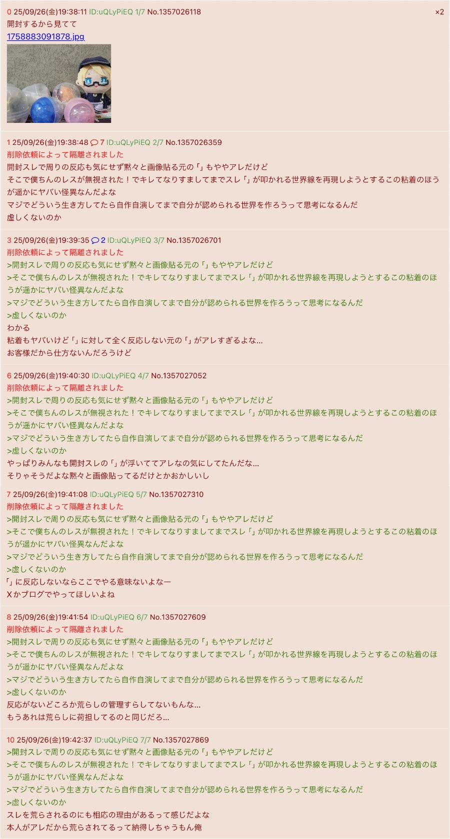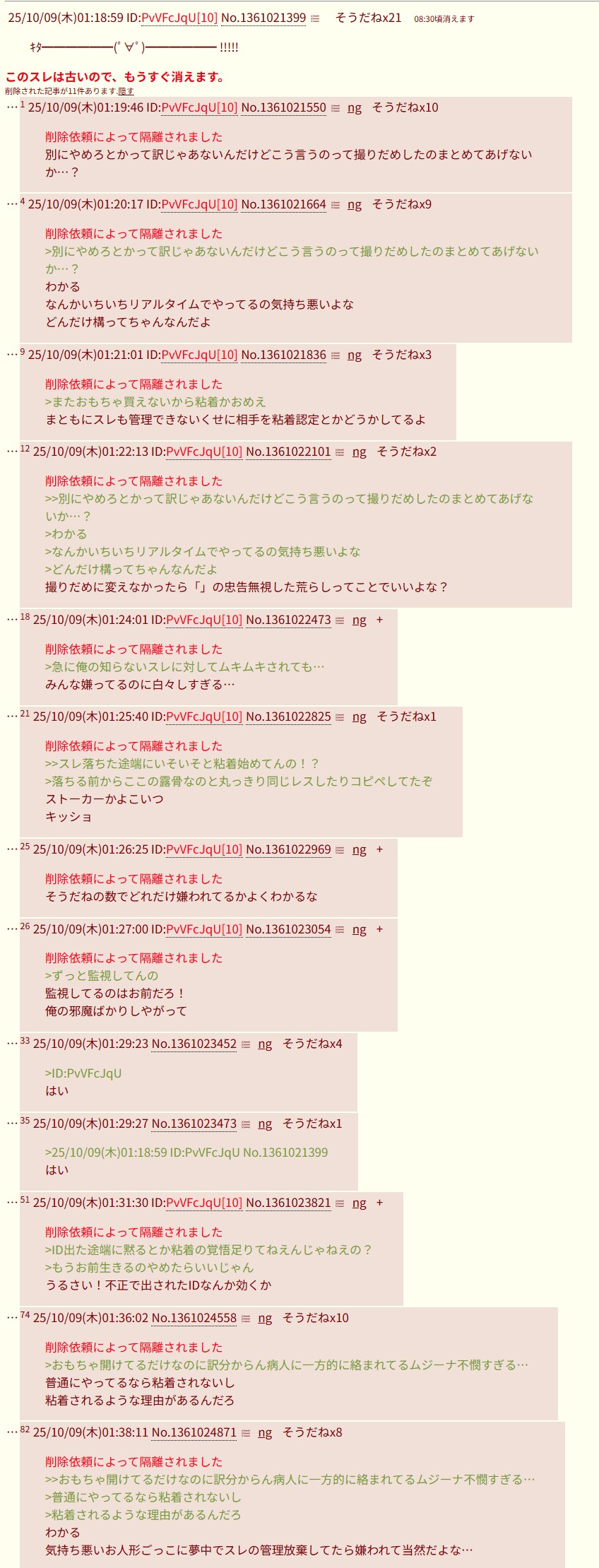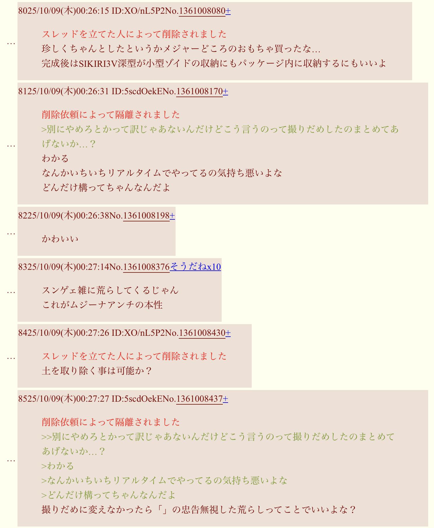 | … | 525/10/09(木)18:27:39 ID:KEpb2J8gNo.1361174216+削除依頼によって隔離されました |