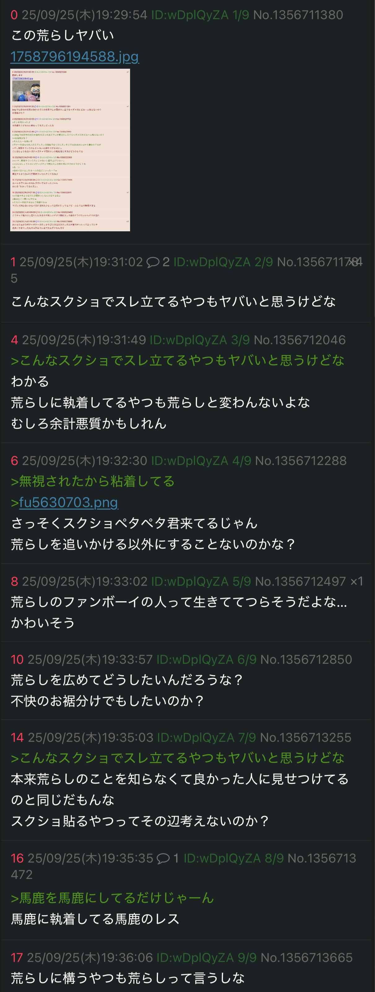 | … | 6725/10/09(木)18:39:39No.1361177656そうだねx1馬鹿なスレ蟲はスレ爆破すれば逃げ切れると思ってるんだよね |