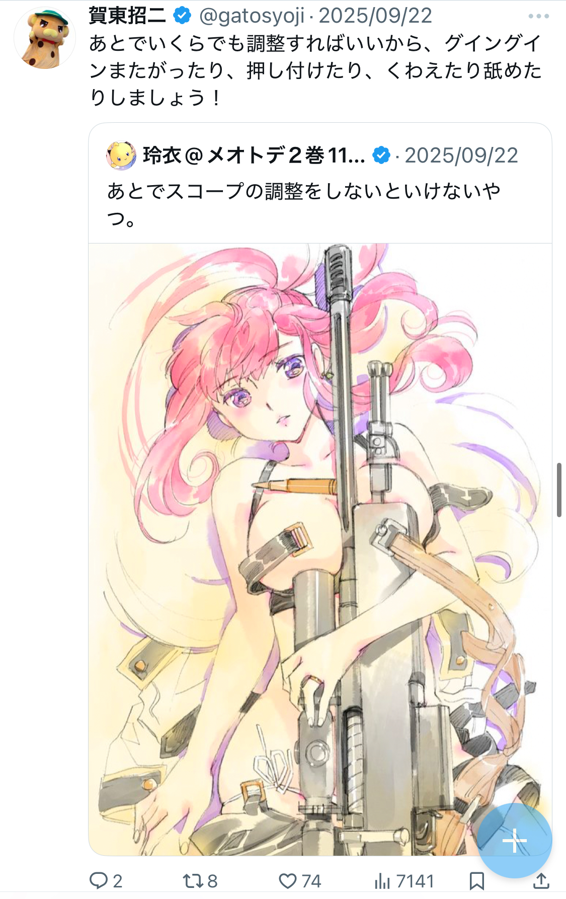 | … | 1025/10/11(土)06:51:26No.1361632877そうだねx1>>対戦車ライフル使いの無知ショタ |
