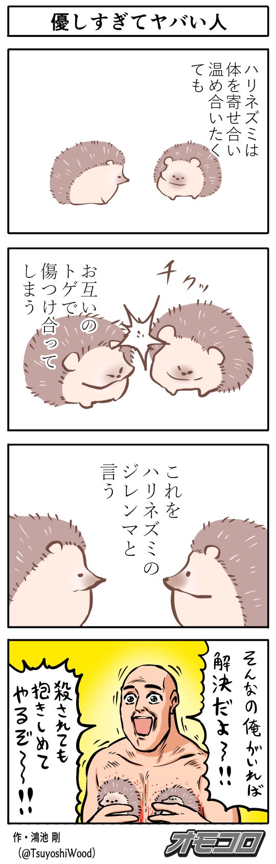 | … | 3925/10/11(土)17:25:43No.1361769793+それはヤマアラシやろがいって存在しない5コマ目を作ってるならレベルが高い4コマ |
