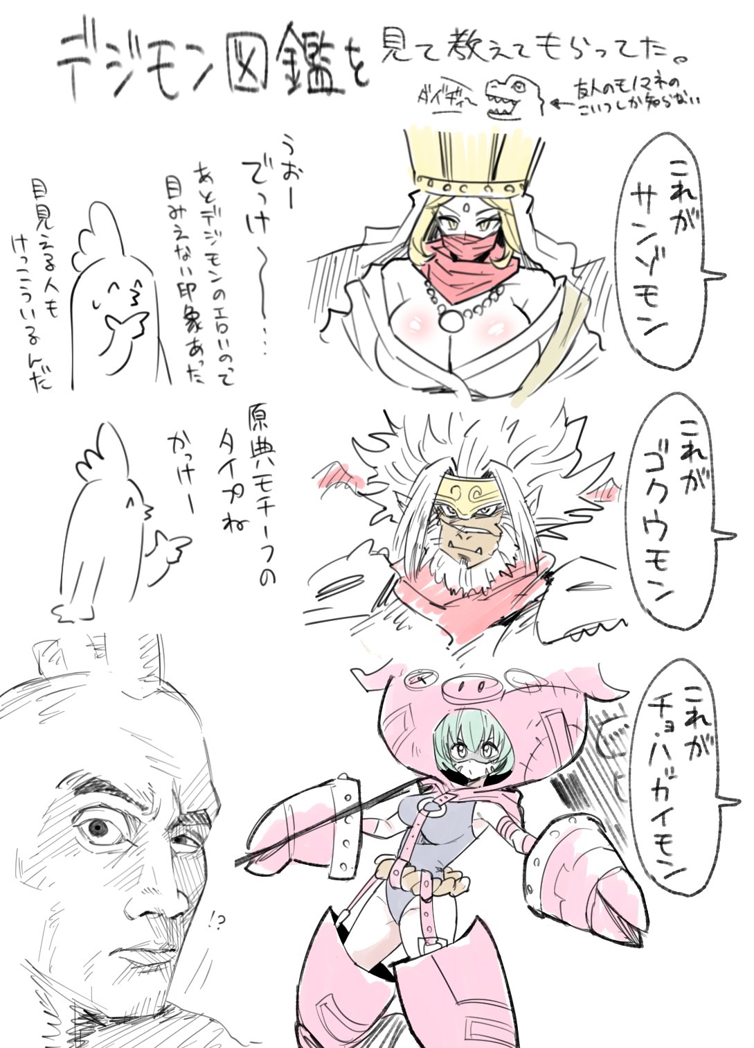 | … | 6525/10/12(日)02:52:17No.1361962061そうだねx1デジモンがどうしてこうなのかはデジモンがデジタル空間でインターネットとかの情報を元に産まれるからネットミームとか取り込んで変なのが産まれたりする |