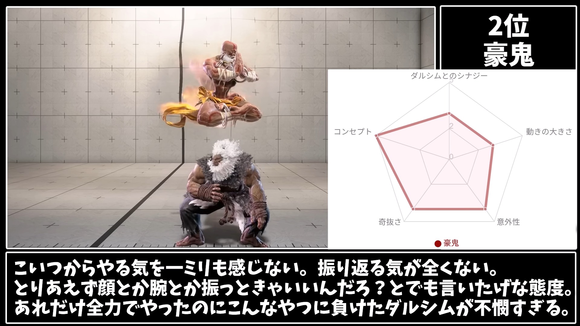 | … | 93825/10/13(月)02:49:42No.1362335397+これがランクマで1抜けが対策とか言われるダルシムの姿か? |
