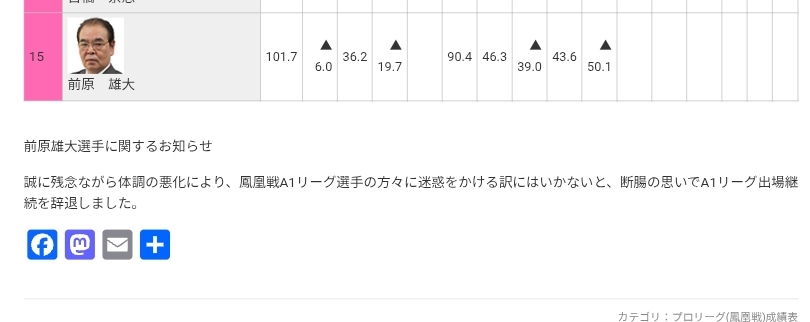 | … | 10325/10/15(水)15:07:41No.1363075848+体調悪いのは知ってたけど対局できてたからまだまだ先の話かと思ってたわ |