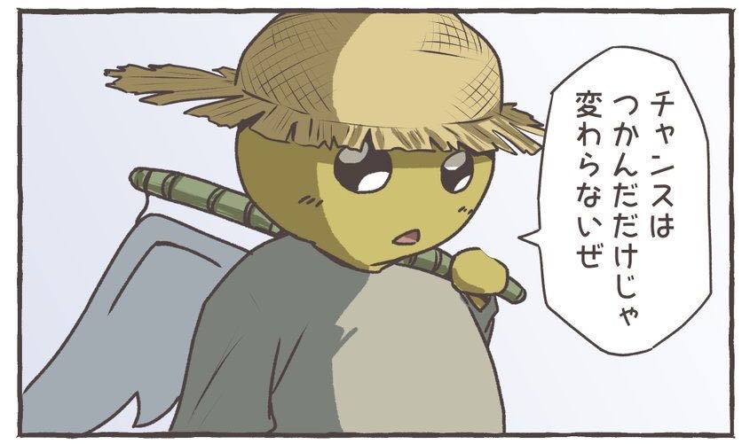 | … | 17125/10/16(木)19:50:39No.1363427210そうだねx2>「チャンスが来ても掴まなきゃ変わらないぜ」とかじゃない普通は? |