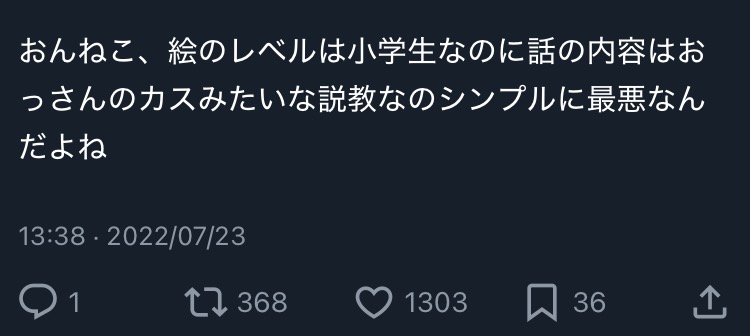 | … | 20225/10/16(木)20:06:04No.1363432813+>おんねこ書いてた当時はクソなもん書いてんじゃねえよ死ね!って叩いてたやつが続けてればなぁ…って惜しんでるのもう寓話だろ |