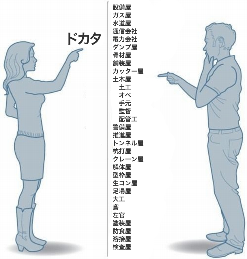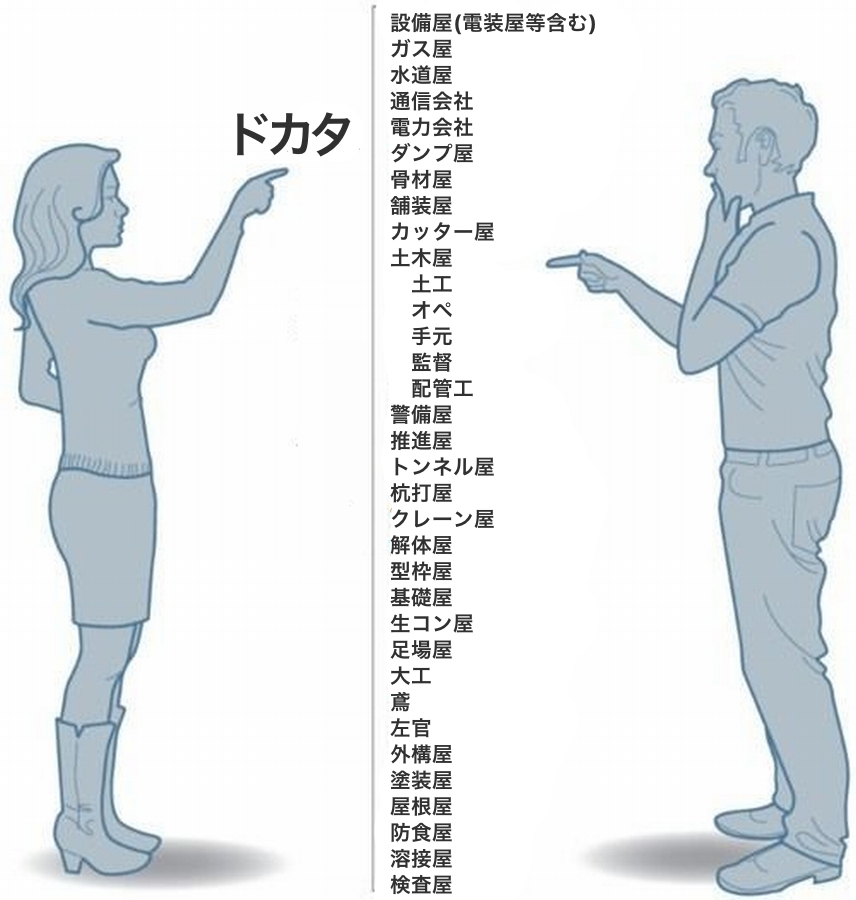 職業職能関係なく道路工事か建築作業してればひっくるめてドカタ呼ばわりしてるところはある