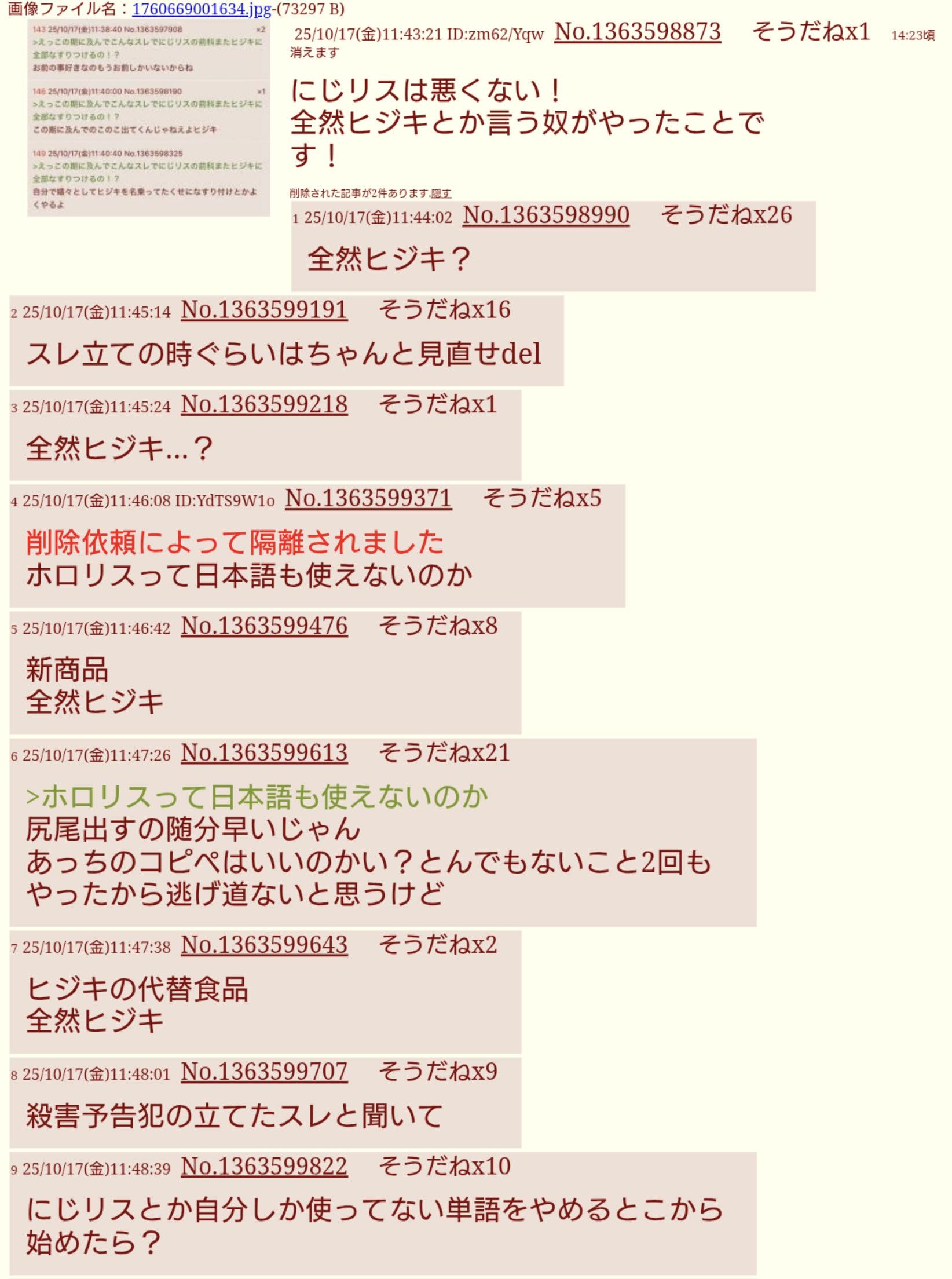 | … | 625/10/17(金)22:19:51No.1363773246そうだねx2ぶっちゃけ今いもぷりスレの住人が荒らしになってるよね? |