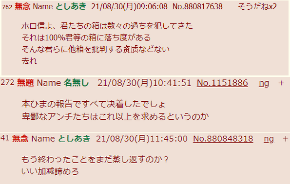 | … | 8125/10/17(金)22:30:30 ID:2pUvBHqkNo.1363777406そうだねx10気に食わない奴にマジレス連呼してにじさんじは被害者なんですやってるのってやっぱこういうホロライブアンチなんだなぁ |