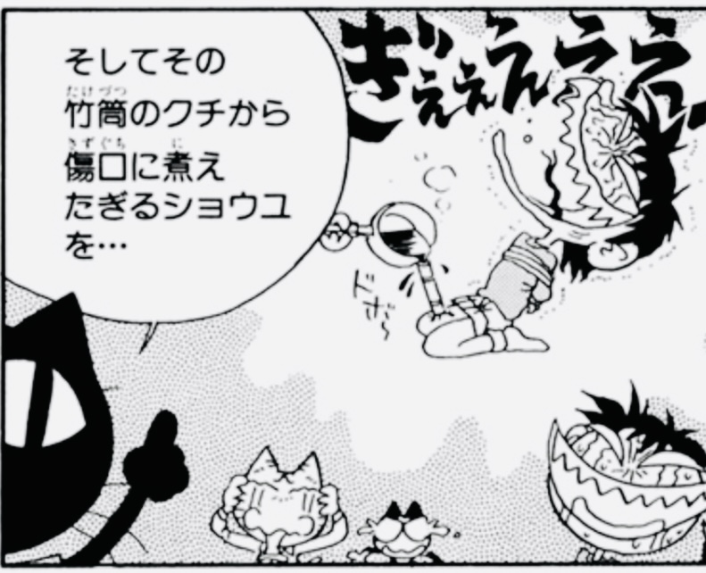 5.二足歩行の猫が出てくるギャグ漫画…ふとももに竹を打ち込んで醤油をトクトク流す描写が凄く怖かった