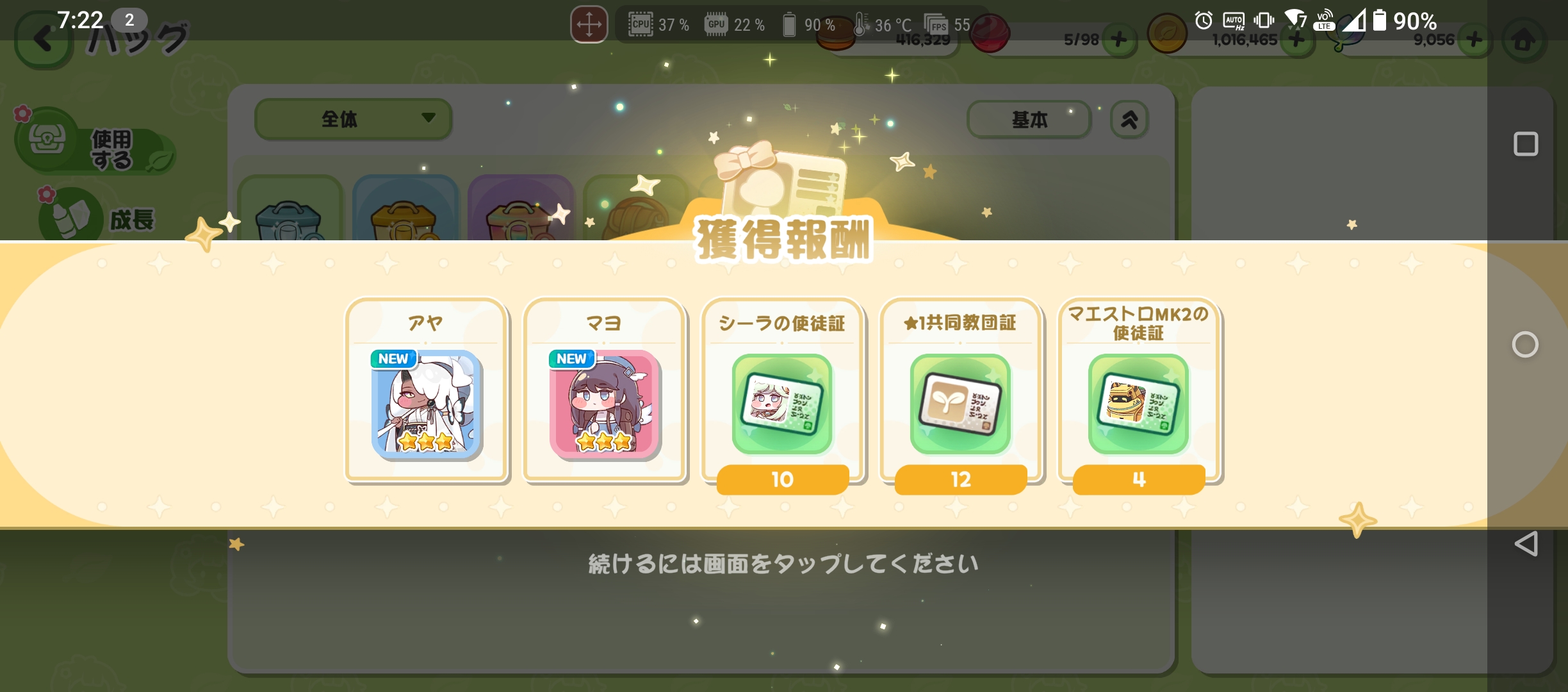 | … | 5925/10/18(土)02:59:24 ID:RPd6KBvENo.1363841882+メインストーリー読み切ったら色々貰えてこれカードガチャ券で天井分近くまでいくね |