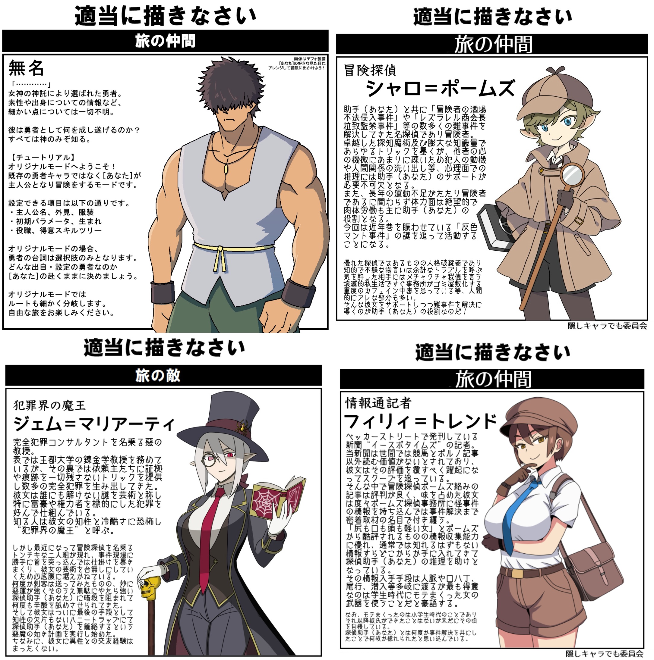 | … | 1325/10/18(土)16:37:29No.1363984632+ポームズやマリアーティはまだファンタジー世界観に寄せてるけどトレンドはもうこれただの探偵小説のキャラだろ |