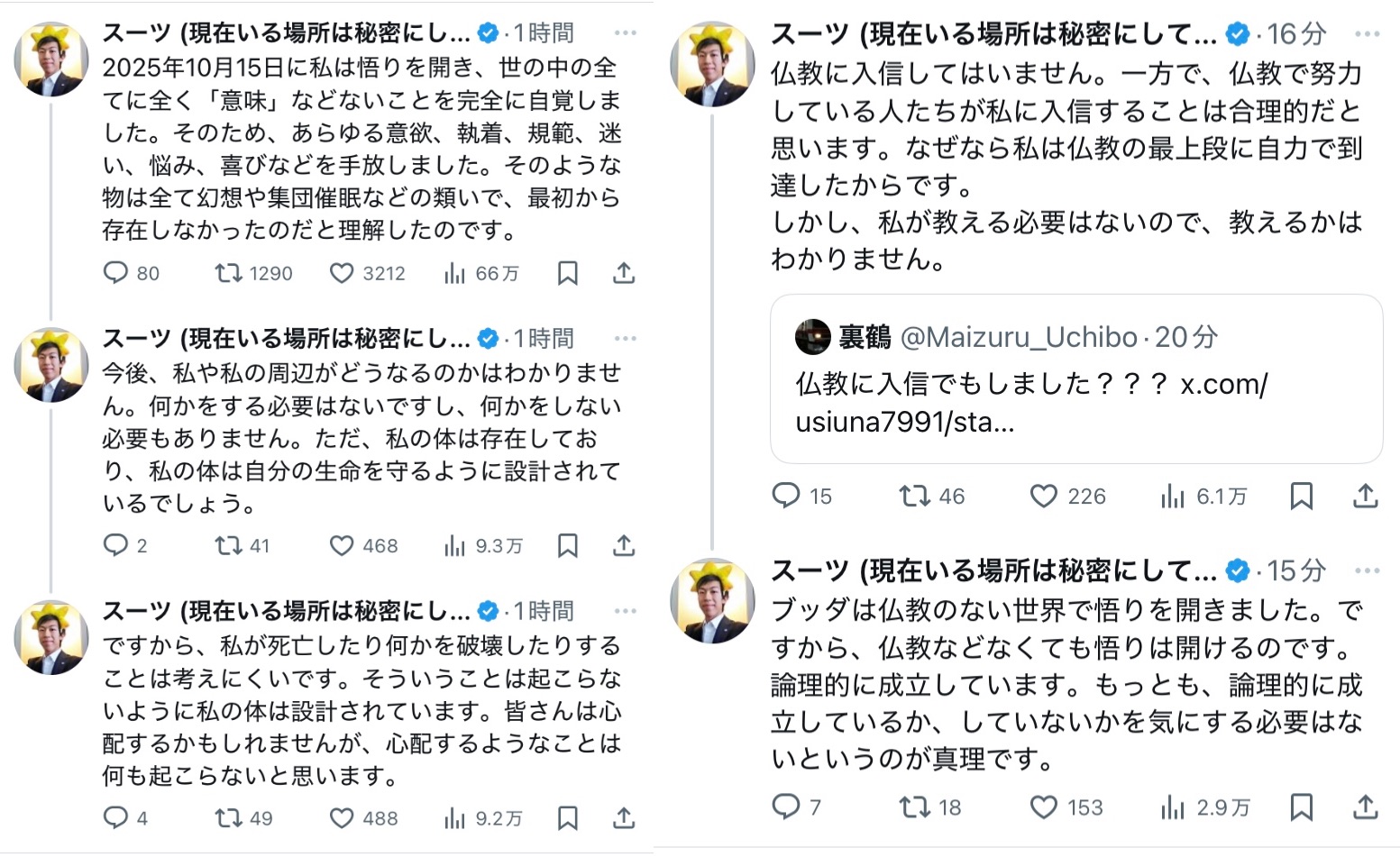| … | 5525/10/18(土)23:02:18No.1364133911+ブッダの後追いも悟りをXで報告する時代か |