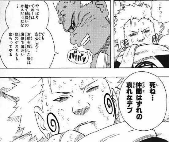 | … | 21725/10/19(日)12:20:34No.1364270906+>キバなんか初登場時点で実際戦ったらチョウジにまず勝てないくらいには実力差あるのによくナメた口きけたなとは思うわ |