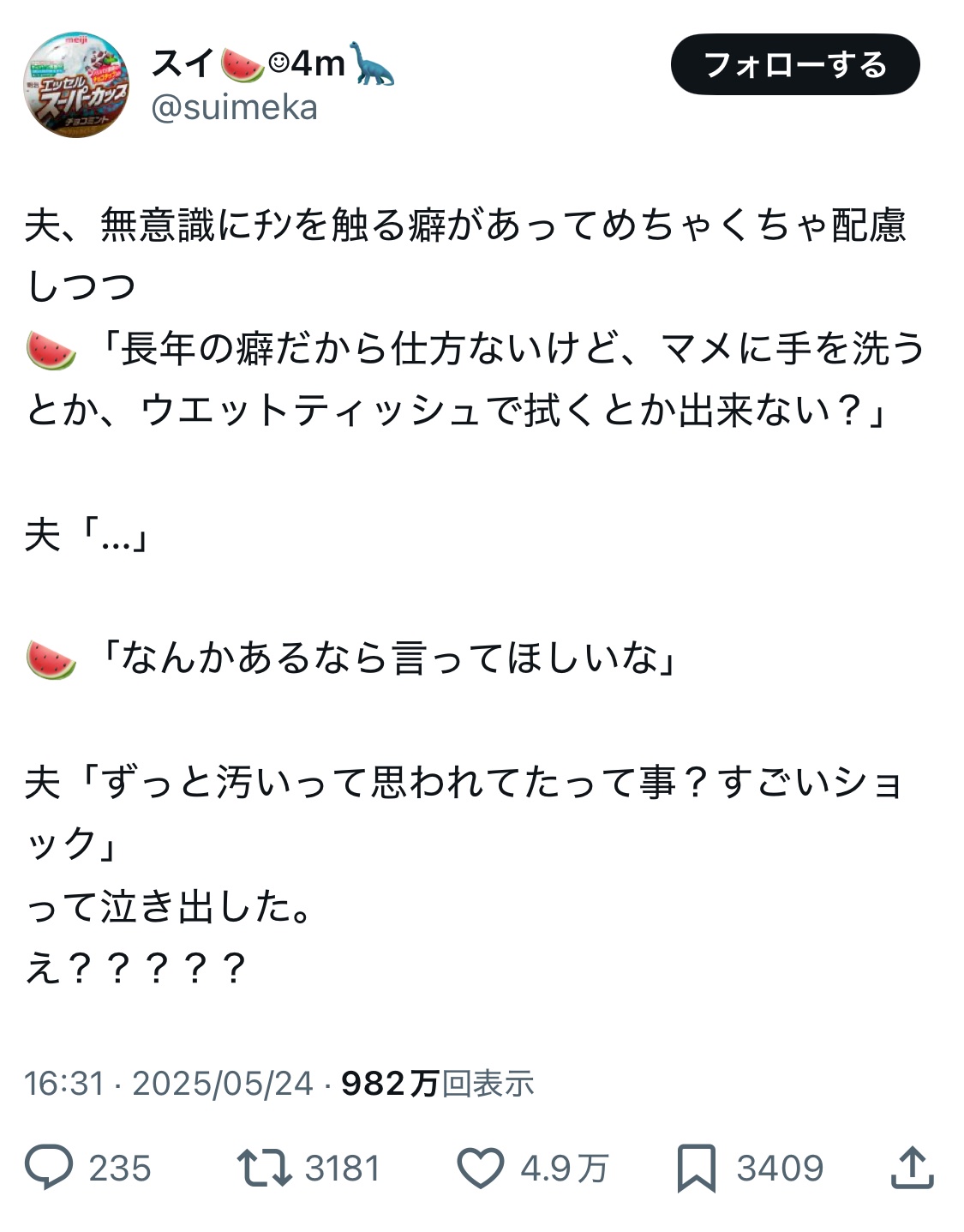 | … | 125/10/21(火)15:40:30No.1364961971そうだねx1シンプルにチンコ触んの汚いからやめたほうがいいよって言お |
