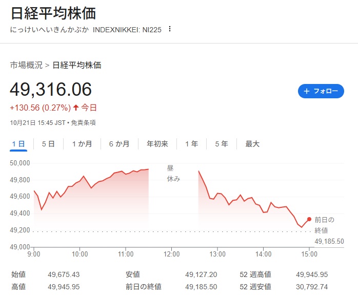 | … | 32025/10/21(火)21:02:48No.1365057974+NIKKE平均先物(シカゴ)だともう49570円なのね |