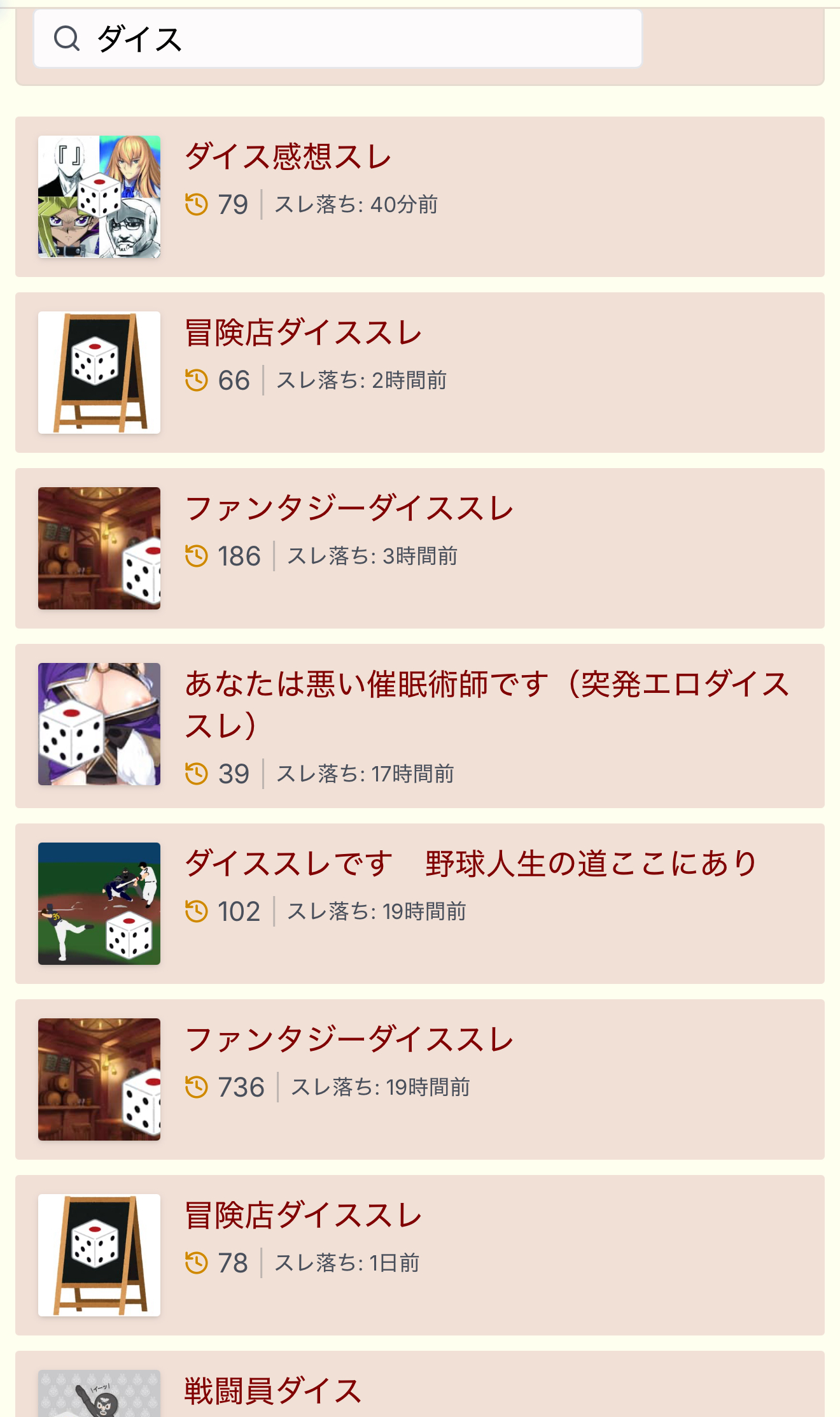 | … | 5125/10/22(水)08:57:41No.1365177770+>>>めかぶはまさはるも無いしダイススレとか楽しいスレばかりだからおいでよ |