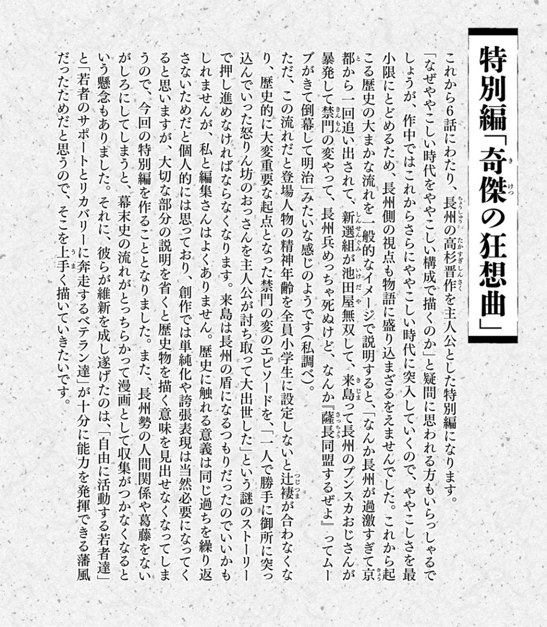 >何より明らかに先生の筆乗りまくってるから幕末終わるまで後5年はかかると思う