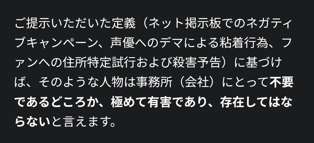 | … | 9525/10/23(木)12:49:56No.1365515998そうだねx1>会話出来ないって言われているのに定型分しか返せない |