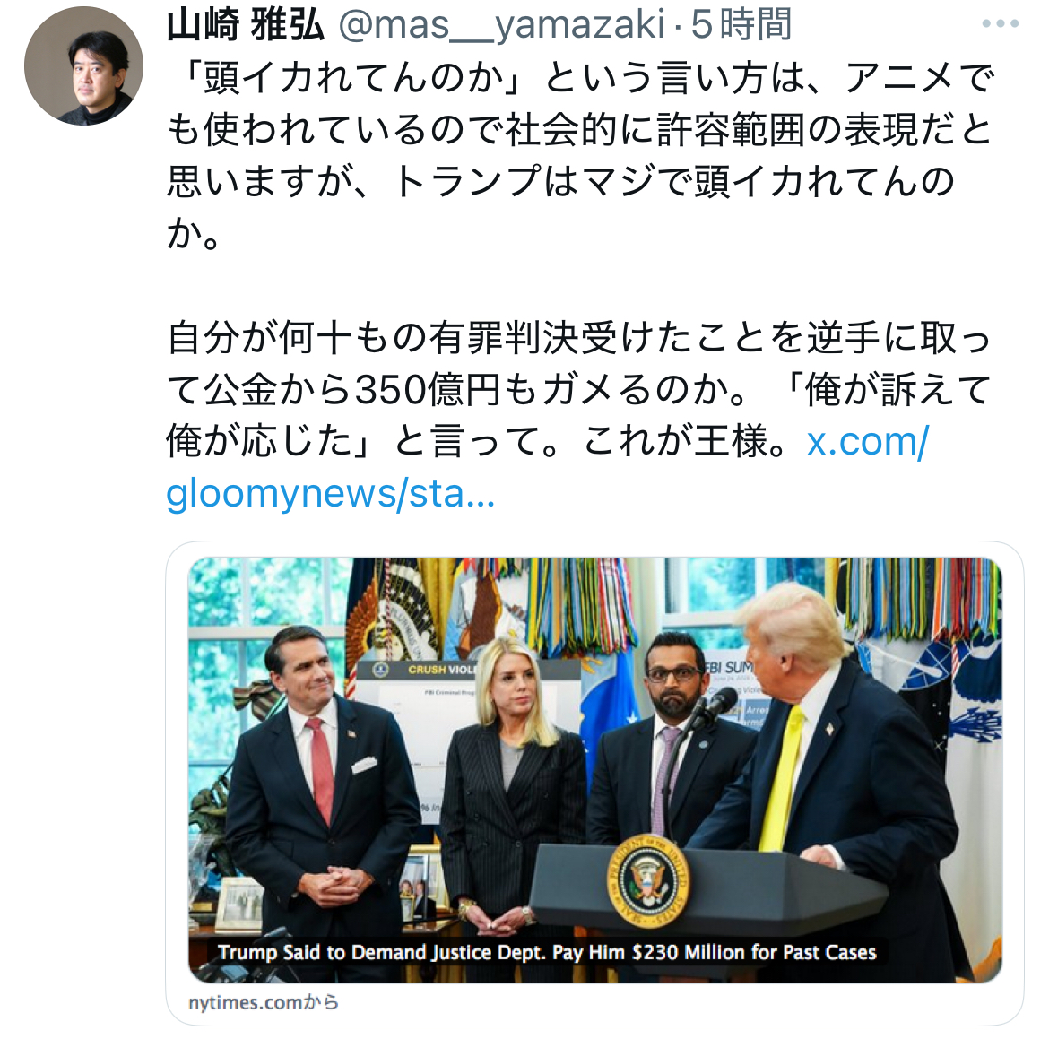 | … | 8825/10/23(木)15:04:51No.1365544780そうだねx1まあバイデンが悪い民主党が悪いて済むからセーフ |