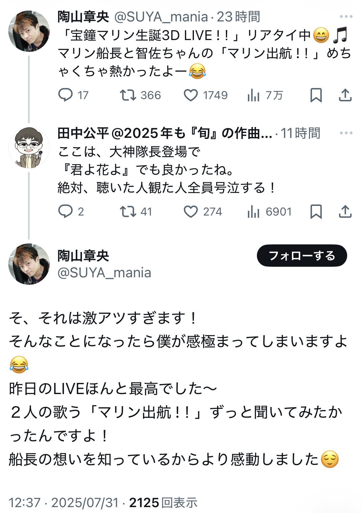 | … | 1225/10/23(木)14:17:05No.1365534688+まあ声優はライブ呼んだら来るしソシャゲの声優もやったし田中公平に曲も作らせたし |