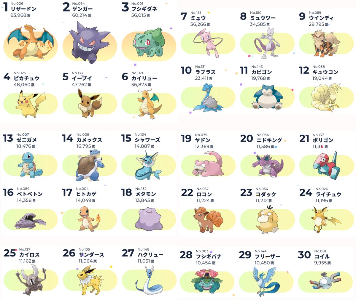 | … | 4125/10/24(金)09:50:58No.1365766127そうだねx2ポケモン総選挙720は9年前のデータだからヤドンは上がってる余地あるよ |