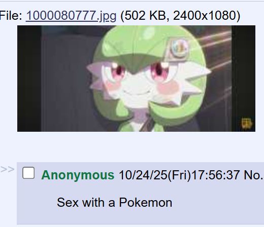 | … | 3525/10/24(金)22:22:21No.1365964683そうだねx4でも人とポケモンは生中セックスOKって古代の人が… |