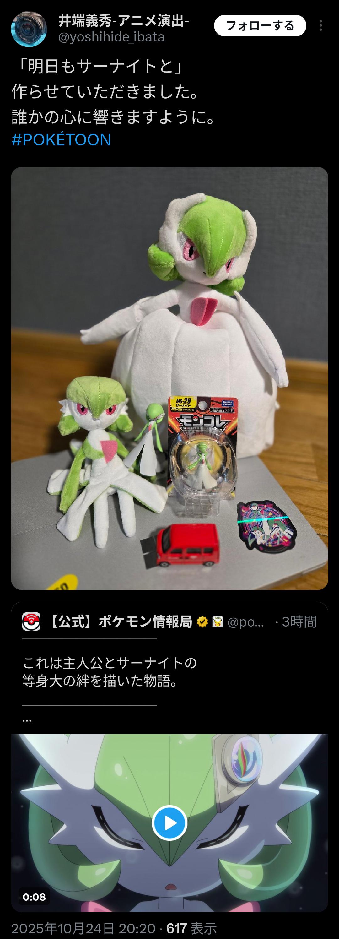 | … | 68125/10/25(土)00:34:26No.1366014189+繰り返し見てるとだんだんサーナイトが作ったうちの旦那の販促アニメに見えてきた |