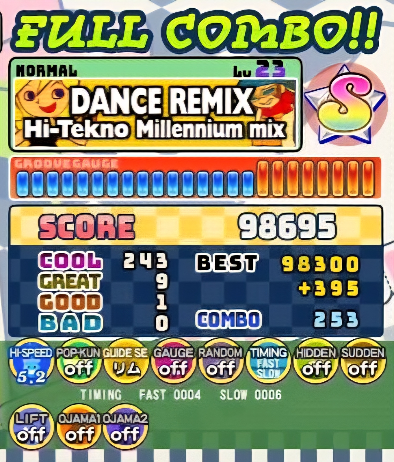 | … | 5125/10/25(土)13:01:03No.1366118767+これ参考にすると後悔することになるけど「ビートポップ君」っていうノーツの色白と青の2色にするオプションオンにすると急にうまくなってノーマル以下一切やる必要なくなるよ |