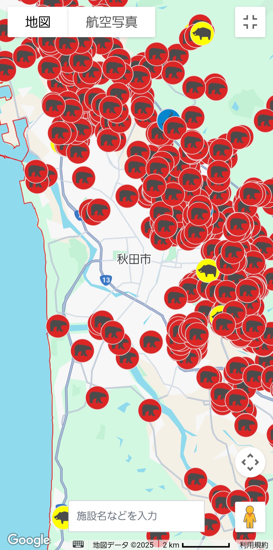 | … | 6325/10/26(日)00:00:05No.1366341536+ちゃんと秋田人の出没個所もマークしろ |