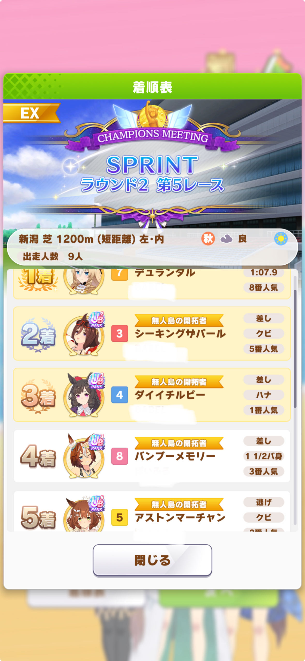 | … | 4225/10/26(日)12:39:18No.1366471689+ラウンド1で短距離Aやチムレ用にも負けて勝率7割弱で不安だったのだ |