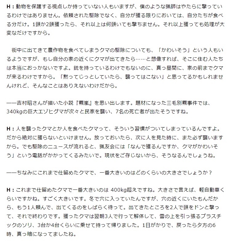 (北海道旭川市在住の猟師)