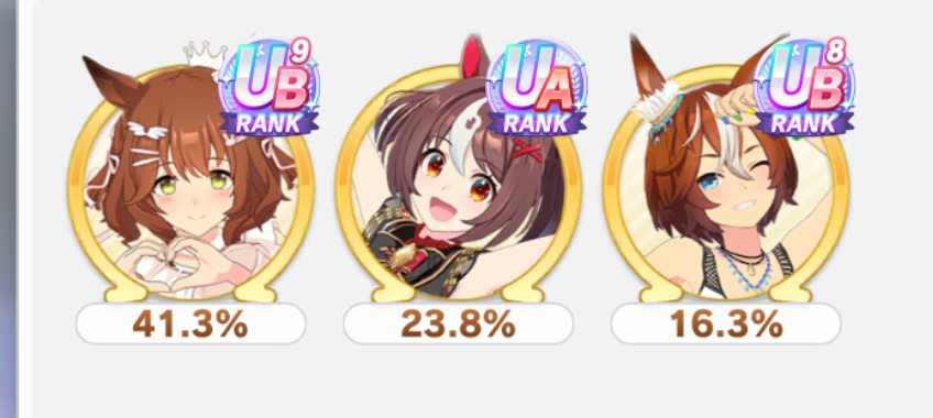 | … | 19725/10/27(月)21:26:51No.1366943478+ビリーヴ入れてるけど逃げ先行多めの時に結構頼れて引いといて良かったってなってるのだ |