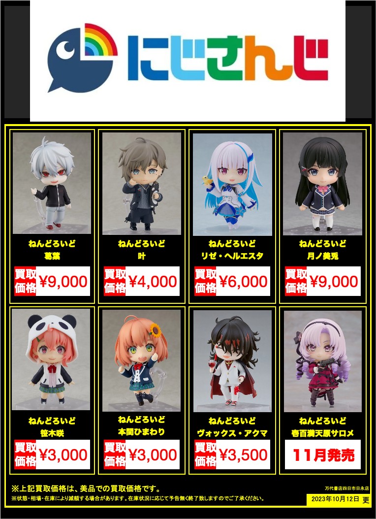 | … | 4725/10/28(火)10:49:30No.1367073553そうだねx11Vtuberねんどろいど買取強化中!って宣伝画像でにじさんじが1/15しか無いのだいぶ終わってないか |