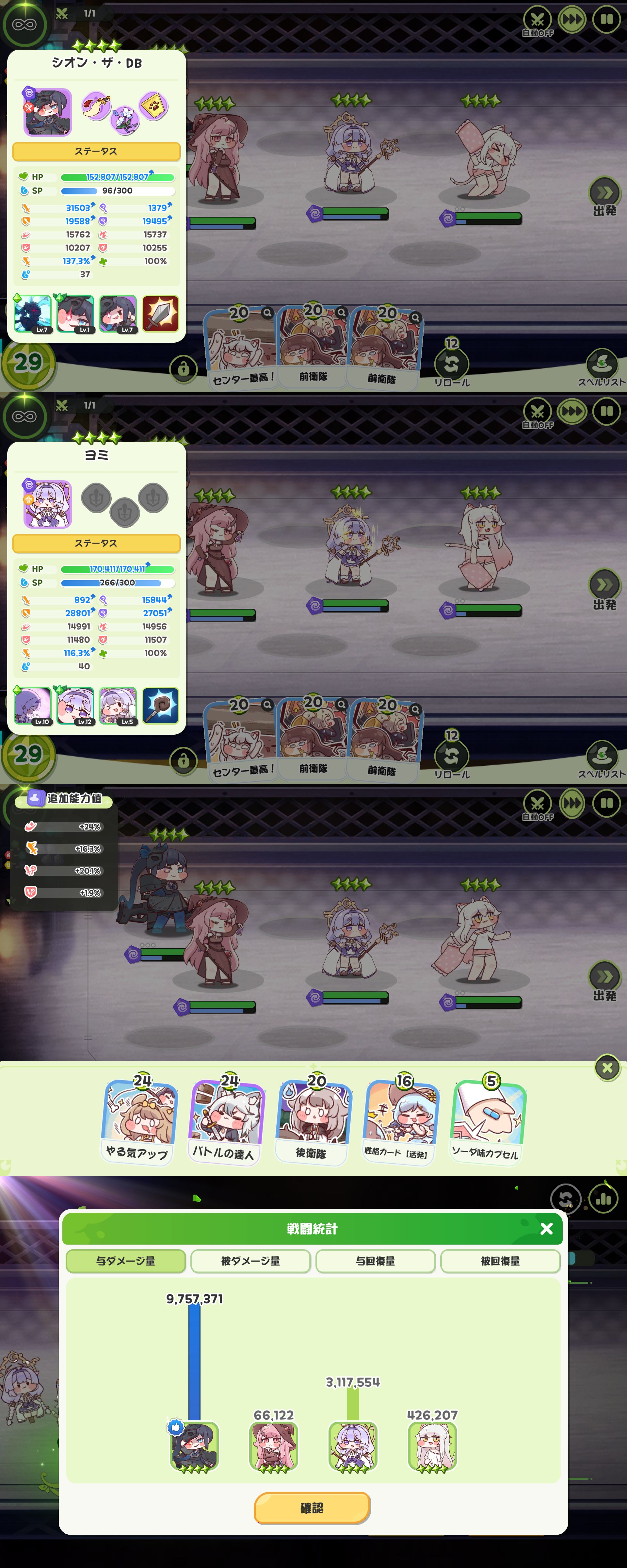 | … | 9425/10/28(火)21:24:14 ID:hrCdFRUYNo.1367264303+レヴィの攻撃スキルどっちも1のまま使ってるのが悪いと言えばそうなんだけどそれでも倍率的には9/11まで上げて与ダメージ大体倍なので920万いくかどうかってとこにゃん |