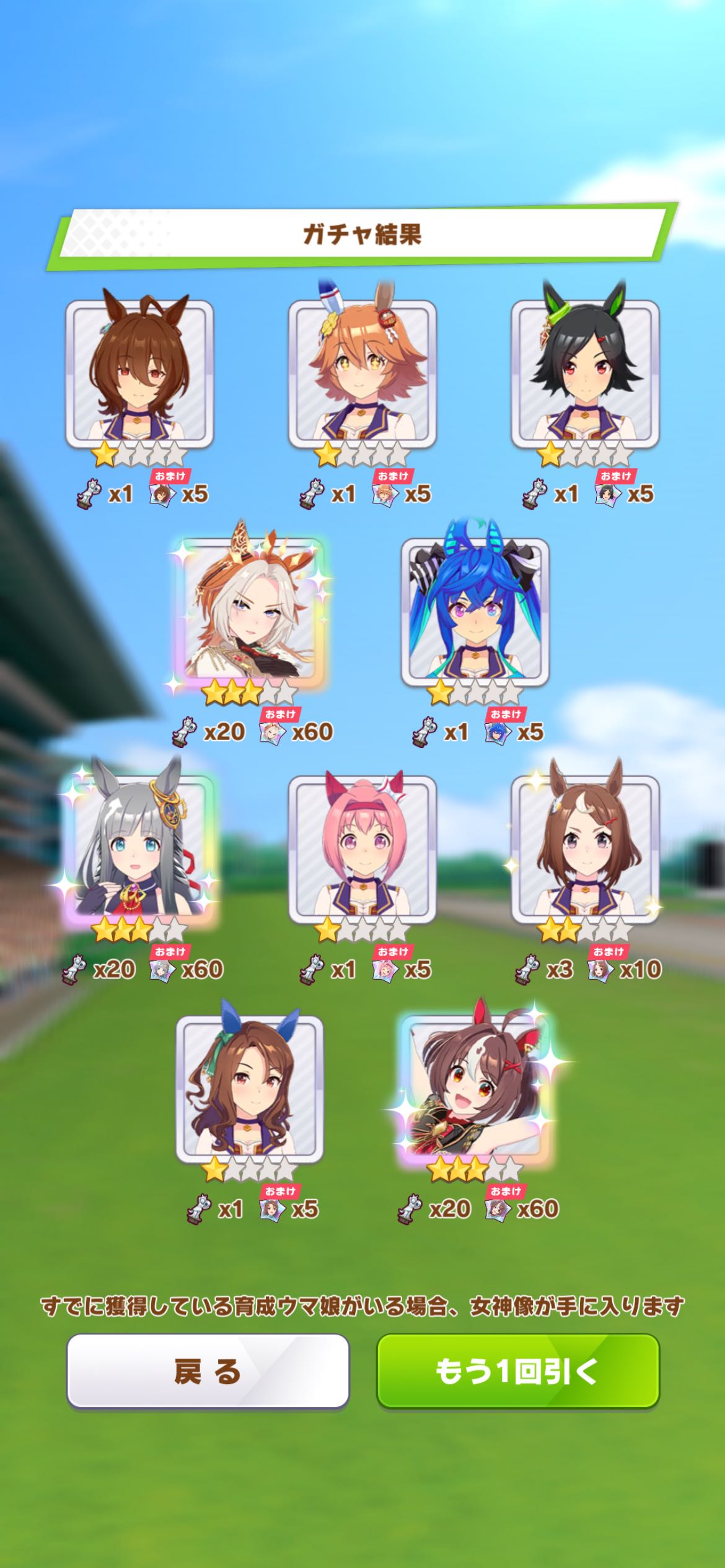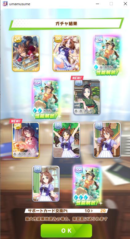 | … | 425/10/29(水)16:08:11No.1367478770+とりあえず有償含めて70連でテイオーと女将の素体は確保したのだ |