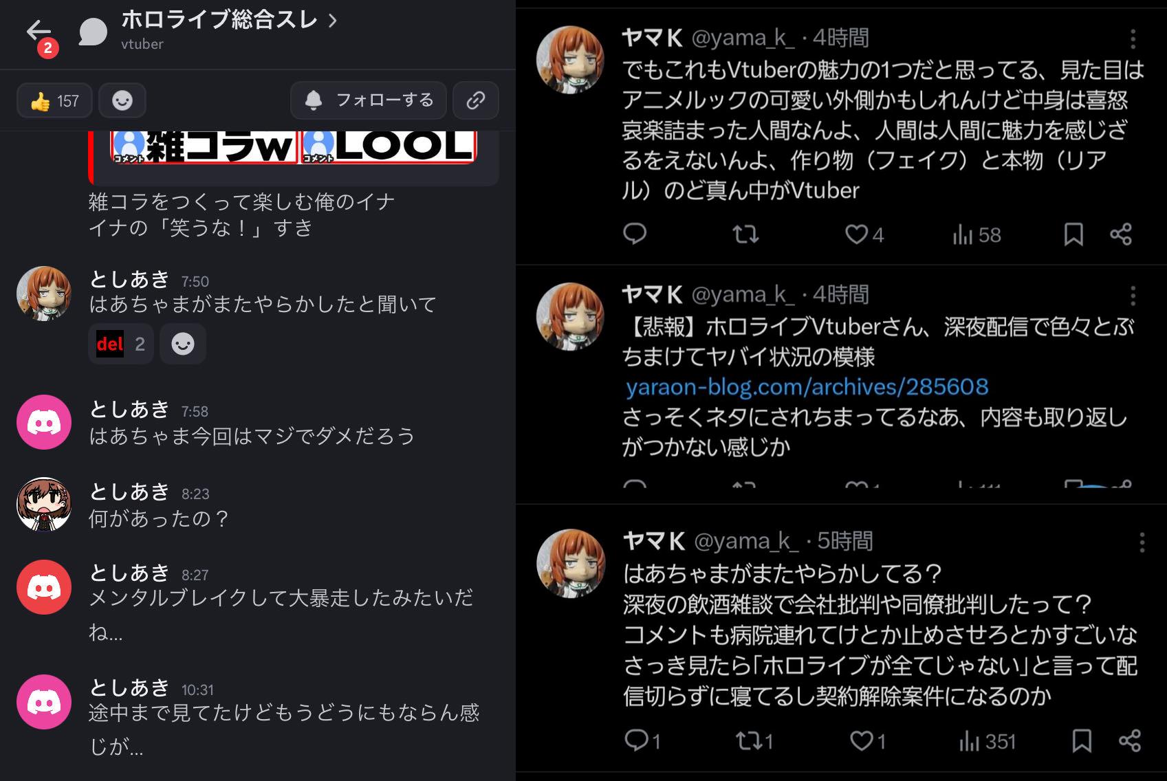 | … | 5525/10/30(木)01:37:59No.1367656453そうだねx6>避難所はヤマKくんが昨日も元気にホロ粘着してるのが観測されたしな |