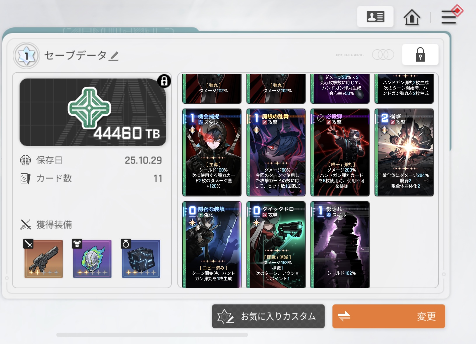| … | 3625/10/30(木)13:36:36No.1367744642+>他人がスキル使用時〜系のカードって軒並み弱い気がする |