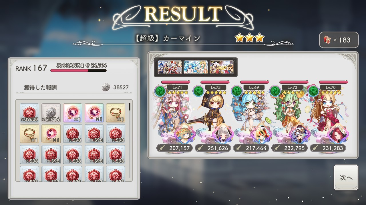 | … | 10325/10/30(木)17:36:52 ID:UQaJfGikNo.1367793033+>長く使いそうな性能だったからなんとか4体確保したっす 有償全部と天井まで回してこれ…最近運悪いっす |